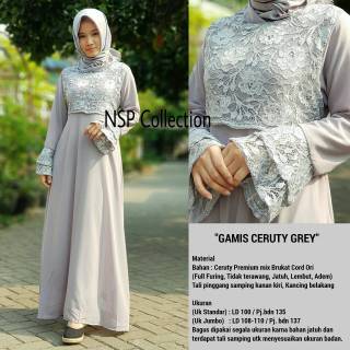 Baju gamis dengan bahan brokat dengan desain yang modern.
