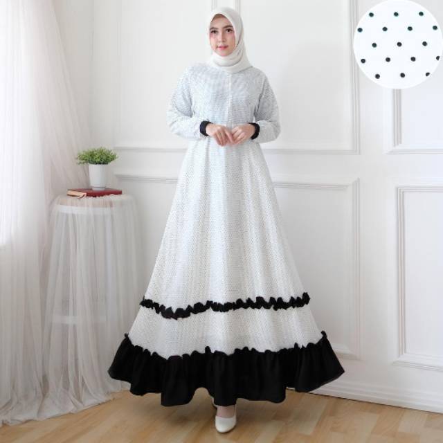 Gamis rempel miring, gamis rempel bawah, gamis rempel, gamis syar i modern, model baju gamis syar i terbaru, macam macam kerudung hijab terbaru rempel pet renda via bajugamismu.com.